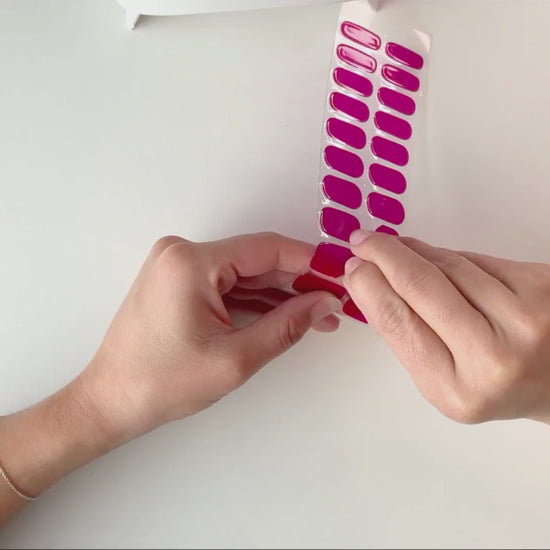 Plaats het nagelriemstokje voorzichtig onder de rand van de gelsticker en duw zachtjes omhoog. Maak de sticker geleidelijk los, zonder te trekken.